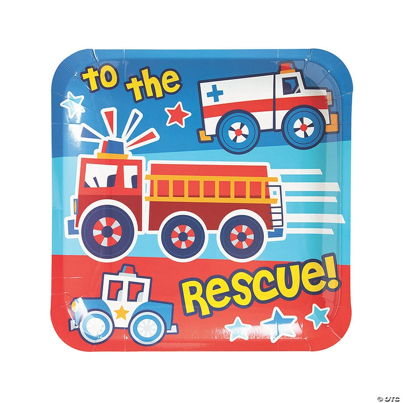Rescue your little one’s party with these fun party plates! A colorful addition to your birthday party supplies, these disposable plates each feature an ambulance, fire truck and police car. Find more little hero party supplies to save your party on this website. Paper. (8 pcs. per unit) 9″ © OTC