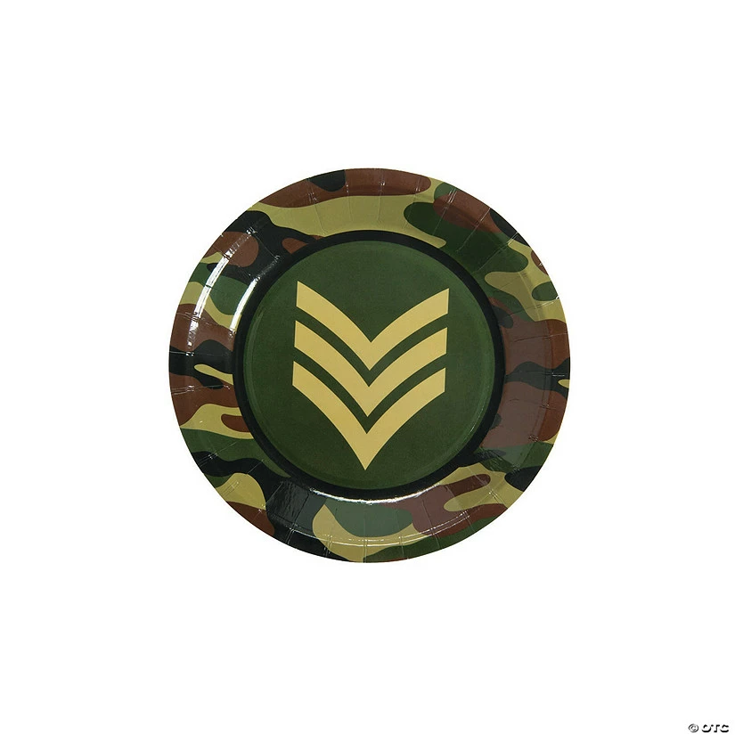 In the messy battle against cleanup time, youβll be victorious thanks to these Camouflage Dessert Plates! Add these army plates to your camo party for an all-star look. Pair these paper plates with our other army party supplies or create your own look with solid color tableware accents. Paper. (8 pcs. per unit) 7″. Β© OTC