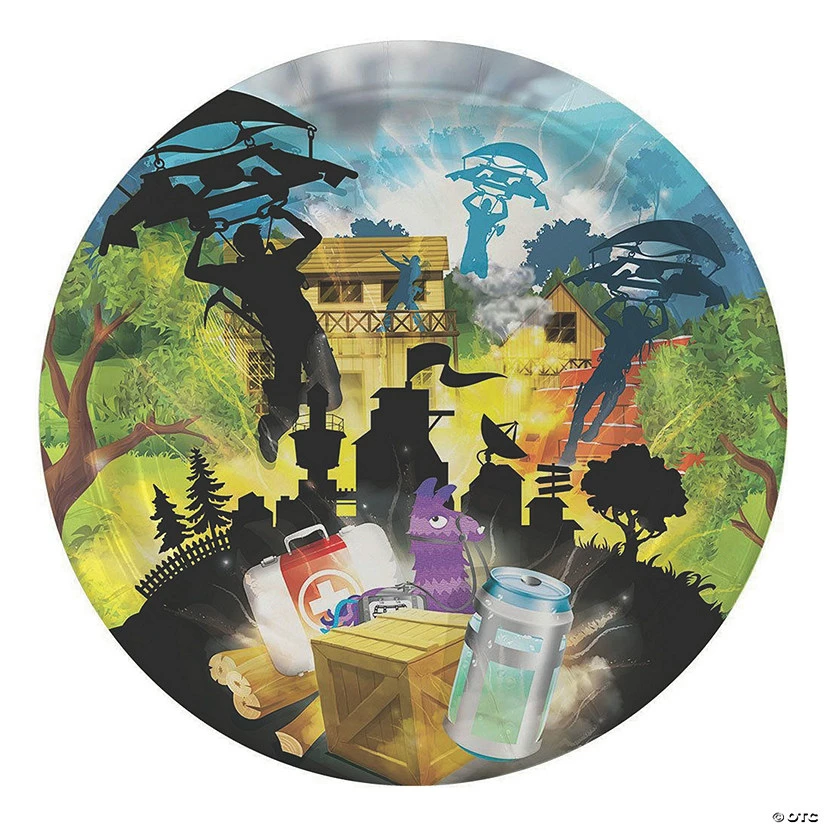 Don’t turn your party planning into a battle; just pick up these perfect party plates! Strong enough to hold up to the biggest battle meals yet disposable for quick cleanup, these paper plates feature fighters dropping in for an epic battle, about to land near a med kit, supplies and … a piΓ±ata?! Check out more Battle Game party supplies and tableware elsewhere on this website. Paper. (8 pcs. per unit) 9″
