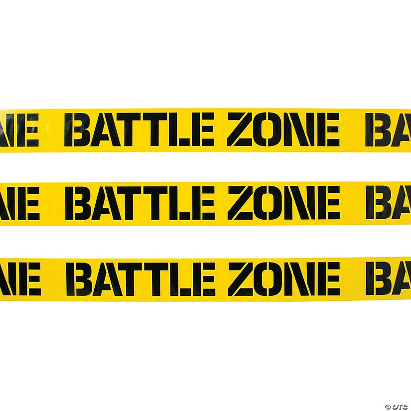 Caution! Don’t cross this tape unless you want to enter the battle zone. Perfect for party dΓ©cor, this tape-like streamer can be cut to any length to decorate table surfaces, string across spaces or drape on a wall as part of a DIY photo booth backdrop. Featuring an eye-catching black and yellow design, this is great to use at a dart battle, dodgeball or laser tag party. Plastic. 20 ft. x 4 1/2″ Β© OTC