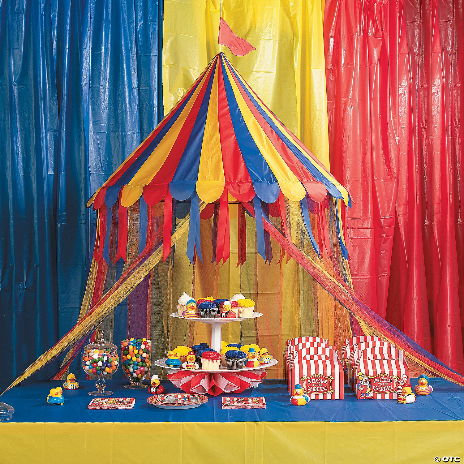 Make story time a playful circus with this Big Top Canopy Tent! It’s great for your school library, or use it for indoor school carnivals. Hang this nylon tent in a corner, bedroom or backyard hideaway for your lil’ show-stoppers! This colorful canopy tent is the perfect decoration for any circus themed birthday parties or events. Nylon. (1 pc./unit) 10 ft. Seats up to 25 children. Β© OTC