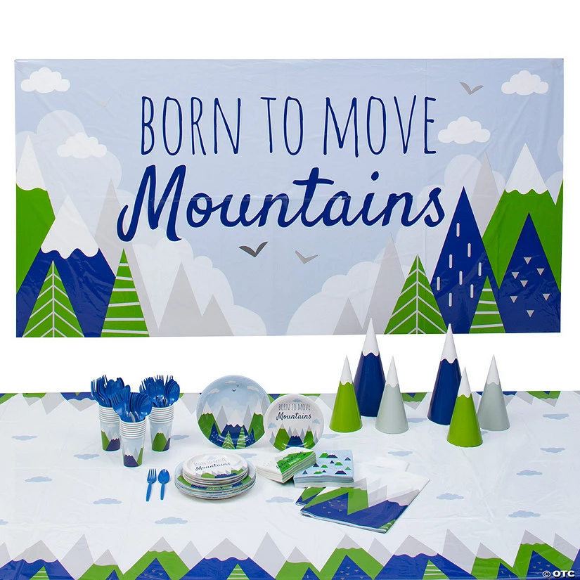 If you are planning a baby shower and expect up to 24 guests, this all-in-one, convenient baby shower kit is the perfect buy! Go for a mountain theme with this Born to Move Mountains Baby Shower bundle! Featuring enough tableware for up to 24 guests and some baby shower decorations, it’s the easiest way to get your shopping done in one swoop! (194 pcs. per unit) Assortment may vary.Includes:β’Β 48-Pc. Plastic Fork & Spoon Cutlery Setβ’ 1 Vinyl Medium Born to Move Mountains Banner (72″ x 36″)β’ 32 Paper Beverage Napkins (5″)β’ 6 Cardstock Born to Move Mountains Centerpieces (6″ – 12″ Simple assembly required.)β’ 24 Paper Cups (3 3/4″ 9 oz.)β’ 24 Paper Dessert Plates (7″)β’ 24 Paper Dinner Plates (9″)β’ 32 Paper Luncheon Napkins (6 1/2″)β’ 3 Plastic Tablecloths (54″ x 108″)