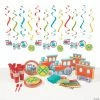 Drive this drift car decoration into your little boyโs birthday party! A must-have party decoration from our Cars & Trucks Party theme, this stand-up decoration depicts a neon colored race car with a cutout windshield. For a fun photo op, arrange the car stand-up with a photo booth backdrop and have the little drivers pose behind the car and in the windshield area! Cardboard. 73″ x 45″ Simple assembly required. Stand-ups are one-sided with a brown cardboard back. ยฉย OTC