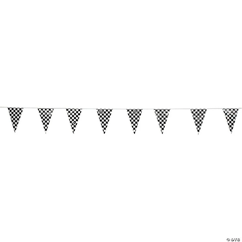 β’ Creative Party Essentials: This 100-foot banner features 48 pennant flags in a black and white checkered theme. β’ Great for Events: Use this fun banner to decorate for racecar or 50βs-themed birthday parties, outdoor gatherings, fun runs and more! β’ Reusable Party Decor: You can use this durable plastic banner for a variety of events, store it easily and then use it again for the next event. β’ Your Party Superstore: We are your one-stop party shop! Come to Oriental Trading for all of your party supply needs, from party decorations to tableware to party favors and more. Product Description: Start your engines! Put your party in high gear with this checkered plastic pennant banner. Bold black and white flags are placed evenly along this 100-foot-long banner. It’s perfect for race finish lines or hanging across gymnasiums and dance halls. Look for other checkered party decor on our site!Specs: Banner dimensions: 100β L, Flags: 18β H, Quantity: 48 pennant flags, Material: Plastic, Brand: Β© OTC – Oriental Trading Company