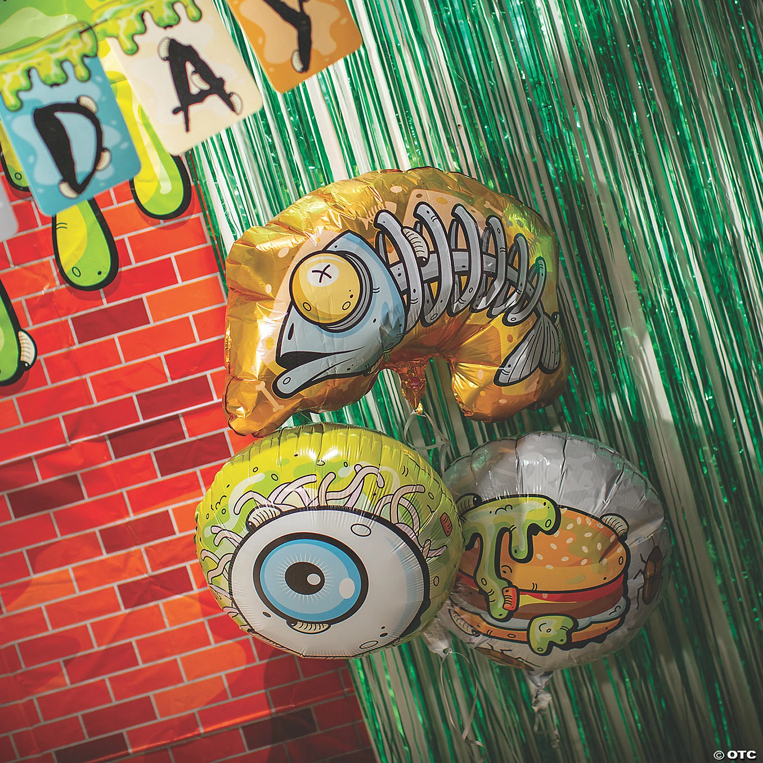 Go for grossing everyone out with these mylar balloons. This balloon set really raises the ick factor, with a rotting eyeball, a gross fish skeleton and a disgusting burger β all with creepy-crawlies all over the place. Just be happy these gross party supplies don’t smell! Check out even more Gross Slime party supplies elsewhere on this website. Mylar. (3 pcs. per set) 15″ – 20″ x 18″ – 23″ © OTC