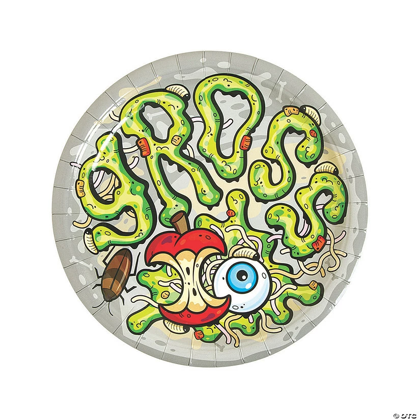 Gear up for the greatest, most gross time ever! Featuring a colorful image of green slime, rotting food and an eyeball, these disposable plates are a must-have for party supplies. The design may be less than appetizing but each plate is durable enough to hold all your oh-so-appetizing foods! (8 pcs. per unit) 9″ Β© OTC
