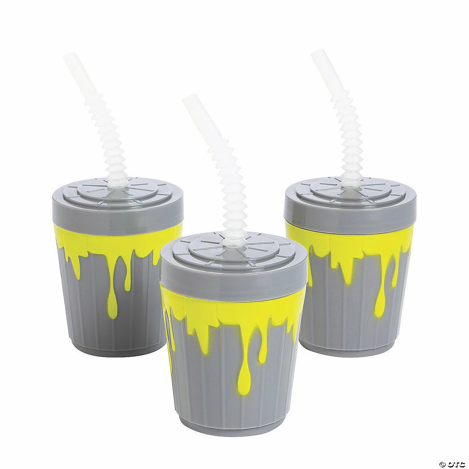 Slime on the outside, fill with whatever party fuel you want on the inside! A gross-out great addition to party supplies, these plastic cups come designed as oozing garbage cans. But with these used to create place settings, your birthday bash is bound to be anything but trash. Little ones will love sipping punch from these as they celebrate, then take βem home as party favors to be used again and again! 4″ with a 7″ straw. 8 oz. Β© OTC