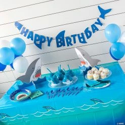 Ready to host a totally jawsome birthday party for a kid who loves sharks? This helpful tableware kit comes with enough disposable shark-themed tableware and decorations for a shark party of up to 8 guests. Make the process of planning a shark-themed birthday party so much easier by getting everything you need in one complete kit. (64 pcs. per unit) Assortment may vary. Β© OTC Includes:β’ 16-Pc. Plastic Blue Fork & Spoon Cutlery Setβ’ 1 Plastic Jawsome Shark Tablecloth (54″ x 108″. Disposable.)β’ 12 Plastic Molded Jawsome Shark Cups with Lids & Straws (3 3/4″ 6 oz.)β’ 2 Foam Shark Centerpieces (13 1/2″ x 13 1/2″ x 11 3/4″ Simple assembly required.)β’ 1 Cardstock with Plastic Twine Shark Birthday Party Garland (8 ft. x 12″)β’ 16 Paper Shark Party Beverage Napkins (5″)β’ 8 Paper Shark Party Dinner Plates (9″)β’ 8 Paper Shark Party Dessert Plates (8″)