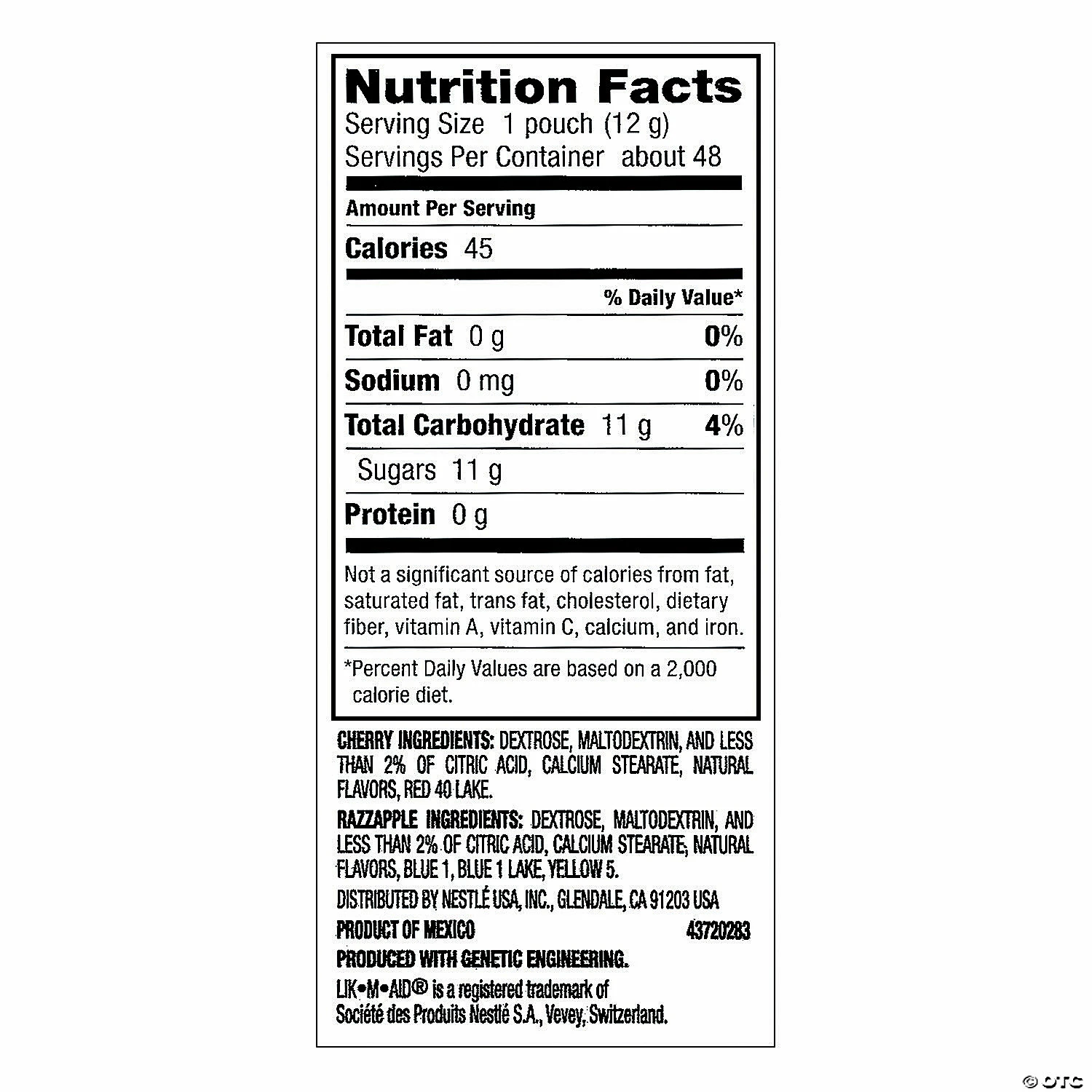 • What’s Included: This set includes 48 individual pouches of Lik-m-aid® Fun Dip™ candy in assorted flavors. • Non-Returnable: Candy is non-returnable. For more information, visit the Return Policy page located on our website.• Important Country of Origin Information: For certain items sold by OTC on our Web or Mobile sites, country of origin information can change and what is displayed may not be accurate or consistent with manufacturer information. For up to date country of origin information, it is recommended that you rely on product packaging or other manufacturer information.• Product Information: Lik-m-aid® Fun Dip™ is fat-free. Details about ingredients, nutrition, allergens and other product information are provided on our Web and Mobile sites for reference purpose only, without warranty or representation as to accuracy. Manufacturers adjust their labeling regularly and are solely responsible for the accuracy of the information. For general questions concerning these items, please contact our customer service at 800-228-0475.Product Description: Kids love it! What’s all the fuss about this Lik-m-aid® Fun Dip™ candy? Lick the candy stick and dip it into the candy powder! This set includes 48 Fun Dip pouches so you’ll have plenty to add into birthday party treat bags, Easter baskets or Christmas stockings. They’re a sweet way to reward kids in the classroom too. Specs:Size: Total wt., 1 lb. 8 oz.Quantity: 48Dietary needs: Fat-freeBrand: Ferrara Candy Company