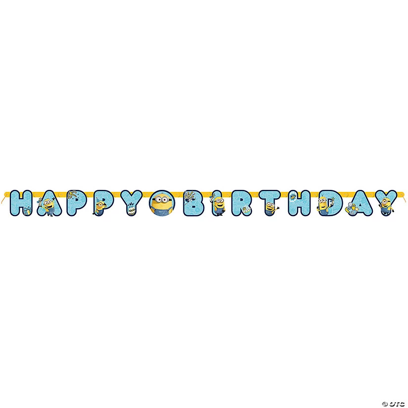 No Minions™ theme birthday party is complete without this adorable banner. Featuring smiling images of the Minions™ and the message “happy birthday”, this jointed banner helps transform the birthday party space into a Minions™ party! This banner will match any Minions™ birthday party decorations and will help the birthday kiddo feel celebrated. Cardstock. 6 ft. x 5″ © Universal Studios