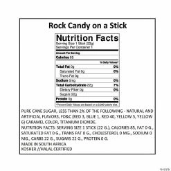 โข What’s Included: This set includes 12 light blue, cotton candy flavored rock candy lollipops on old fashioned sticks. Each is individually wrapped so they’re easy to display and gift. โข Non-Returnable: Candy is non-returnable. For more information, visit the Return Policy page located on our website.โข Important Country of Origin Information: For certain items sold by OTC on our Web or Mobile sites, country of origin information can change and what is displayed may not be accurate or consistent with manufacturer information. For up to date country of origin information, it is recommended that you rely on product packaging or other manufacturer information.โข Product Information: The rock candy on a stick is fat-free, dairy-free, gluten-free and Kosher. Details about ingredients, nutrition, allergens and other product information are provided on our Web and Mobile sites for reference purpose only, without warranty or representation as to accuracy. Manufacturers adjust their labeling regularly and are solely responsible for the accuracy of the information. For general questions concerning these items, please contact our customer service at 800-228-0475.Product Description: Create the most charming baby boy shower! Design your own candy buffet using these light blue rock candy lollipops. The sugar is tinted light blue, has a cotton candy flavor and adds a perfectly sweet touch to your baby shower. They’re also great for any birthday party or to add into other colorful candy displays. Style these light blue rock candy lollipops into glass jars of various sizes and complete the look by filling the jars with other assorted candies. This set includes a dozen light blue rock candy lollipops. Specs:Size: 4 1/2″ sucker, 3″ stickQuantity: 12Dietary needs: Fat-free, Dairy-free, Gluten-free and Kosher