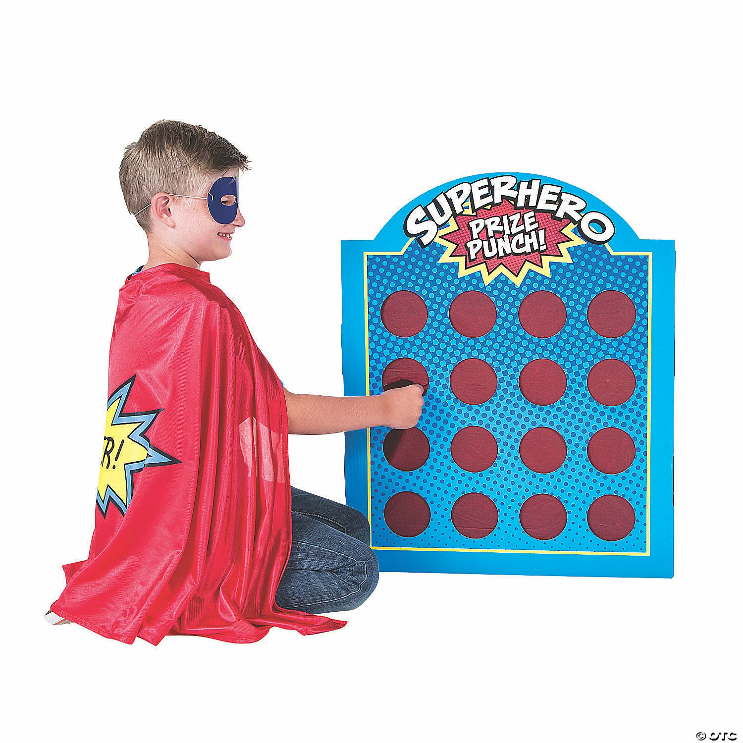 Punch your way to a prize with this amazing superhero party game! This power-packed party activity will have young guests emulating their favorite superheroes and pretending like they’re busting through a wall β POW! β to get to the bad guy. Only with this game, kids will punch to a prize. Find a wide variety of treats and small toys to use as prizes elsewhere on this website. Cardboard and tissue paper. 22 1/4″ x 27 1/2″ Assembly required. Β© OTC
