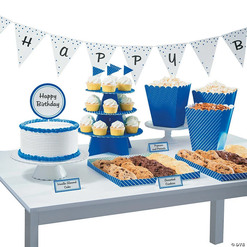 Treat your tastebuds and your eyesight with this party decorating kit! Great for birthday parties, graduations, wedding receptions and any other festivities where treats are served, these party decorations are sure to sweeten your celebration! Make this decoration unique by using your own marker to customize the banner, cake topper and cards with a personal message. (27 pcs. per unit) Assortment may vary.Includes:โข 1 Three-Tier Cupcake Stand (10 3/4″ x 10 3/4″)โข 12 Cupcake Picks (3 1/4″ x 2″)โข 13-Pc. Pennant Banner (Each pennant, 7″ x 6″)โข 4 Large Snack Boxes (7 1/4″ x 6 1/4″)โข 1 Cake Topper (7 3/4″ x 5″)โข 8 Food Tent Cards (1 1/2″ x 3″)