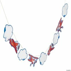His plane-themed birthday party will be flying high with the Up & Away Birthday Garland. These birthday party decorations are the perfect party supplies for your little pilot’s big day. After the celebration, hang these airplane banners in the birthday boy’s room as fun dΓ©cor. Includes 8 1/4″ – 9 3/4″ x 5″ – 7 1/2″ pennants. Paper. 7 ft.